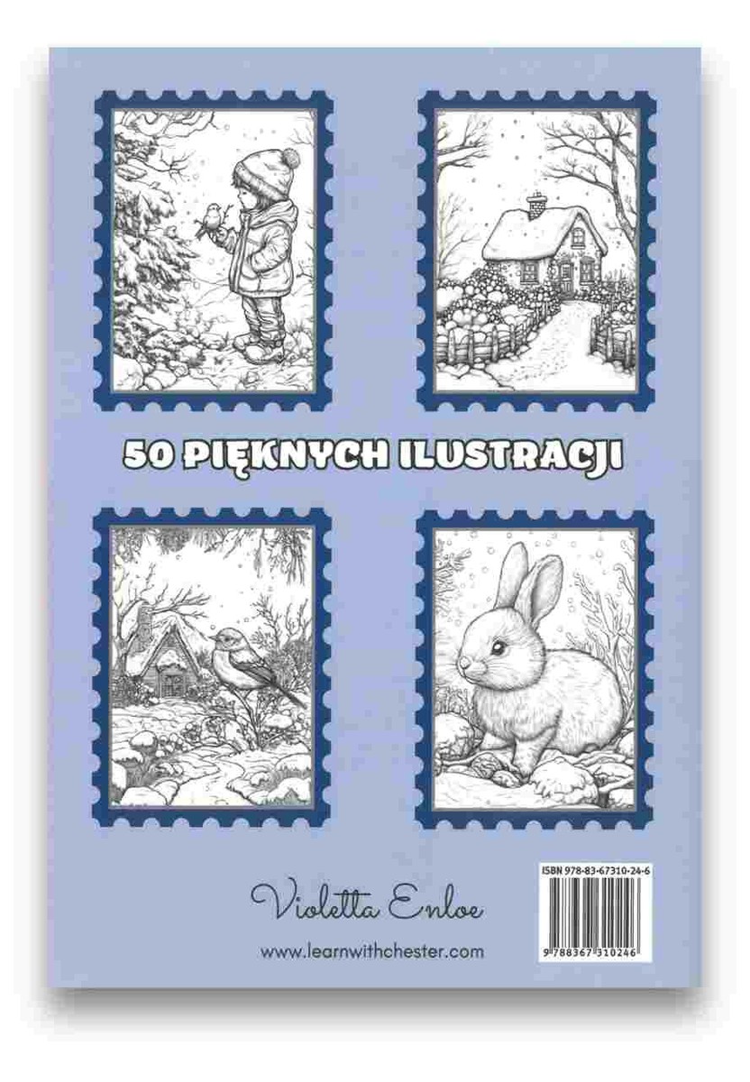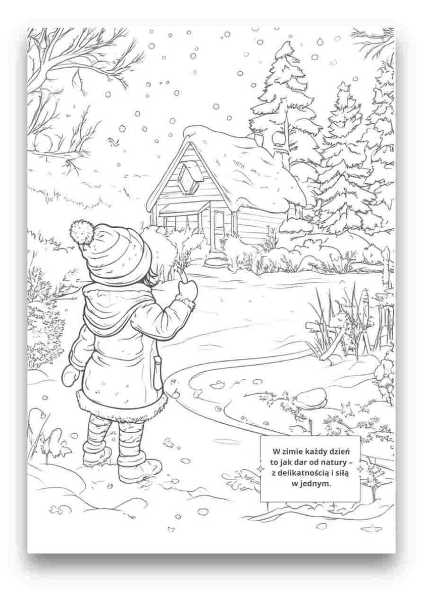 Kolorowanka relaksacyjna "Zima w moim ogrodzie" zawiera 50 pięknych ilustracji do pokolorowania, co może stanowić ciekawą formę rozrywki, szczególnie dla dzieci lub osób lubiących twórcze zajęcia.
