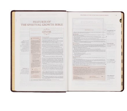 Spiritual growth is a lifelong process of conforming to Christ. The Espresso Brown Faux Leather Spiritual Growth Bible is designed to walk alongside you on this journey to maturity and to become more like your Savior.