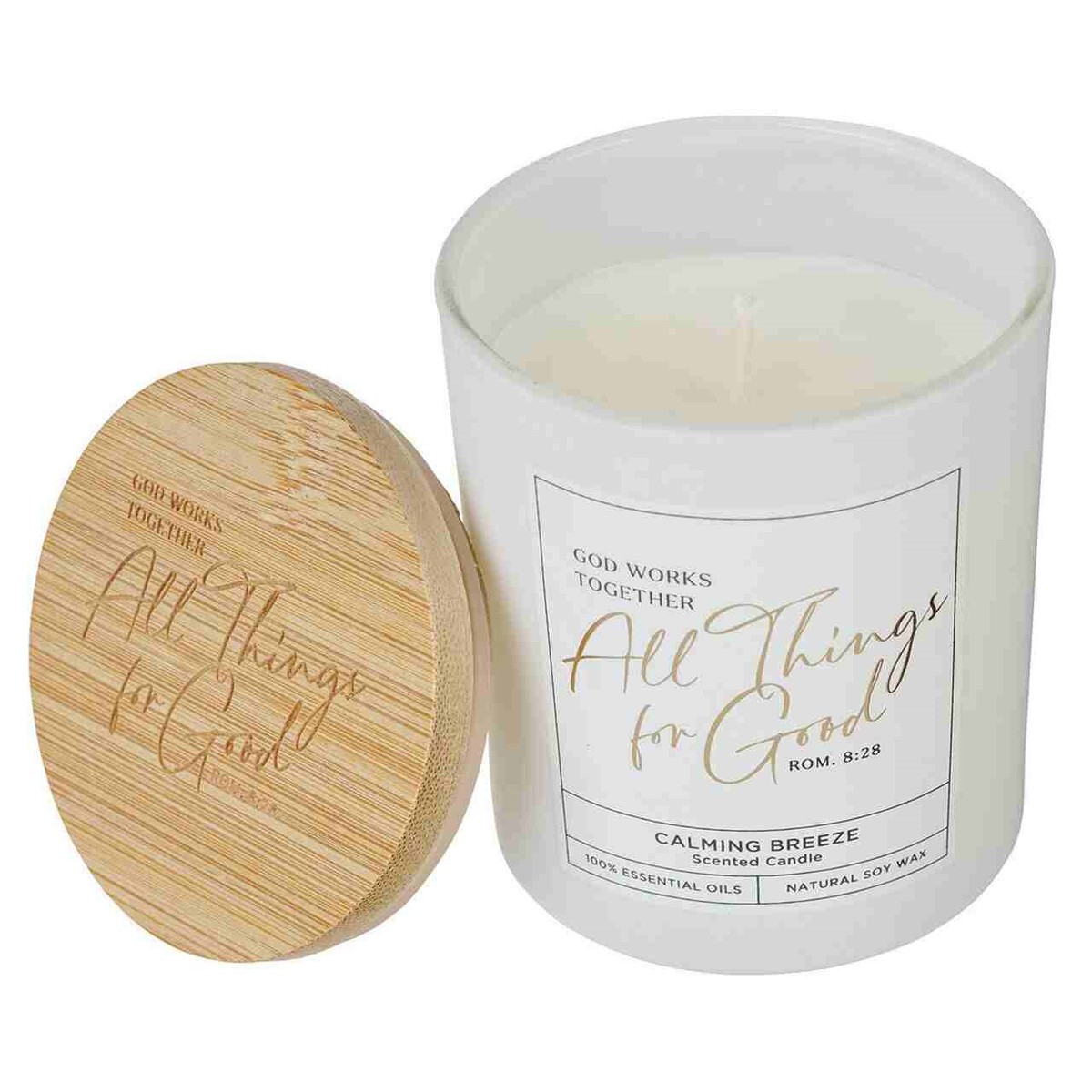 Kiedy życie zmusza Cię do zatrzymania się, znajdź ukojenie w Bożej obecności. Świeca All Things For Good – Calming Breeze pomoże Ci odnaleźć spokój i nadzieję, przypominając o Bożej obietnicy, że wszystko współdziała ku dobremu tym, którzy Go miłują.