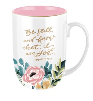 Elegancki kubek, który pomaga zwolnić tempo. Be Still and Know Pink Floral przypomina, by oddać troski Bogu i znaleźć w Nim pokój.