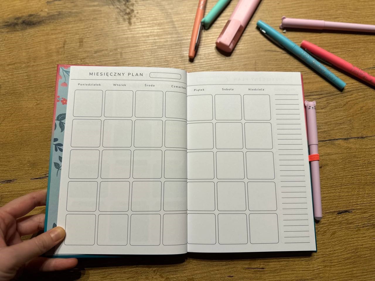 - Układ tygodniowy i miesięczny - klarowne kalendarze, dzięki którym efektywnie zaplanujesz obowiązki i cele.