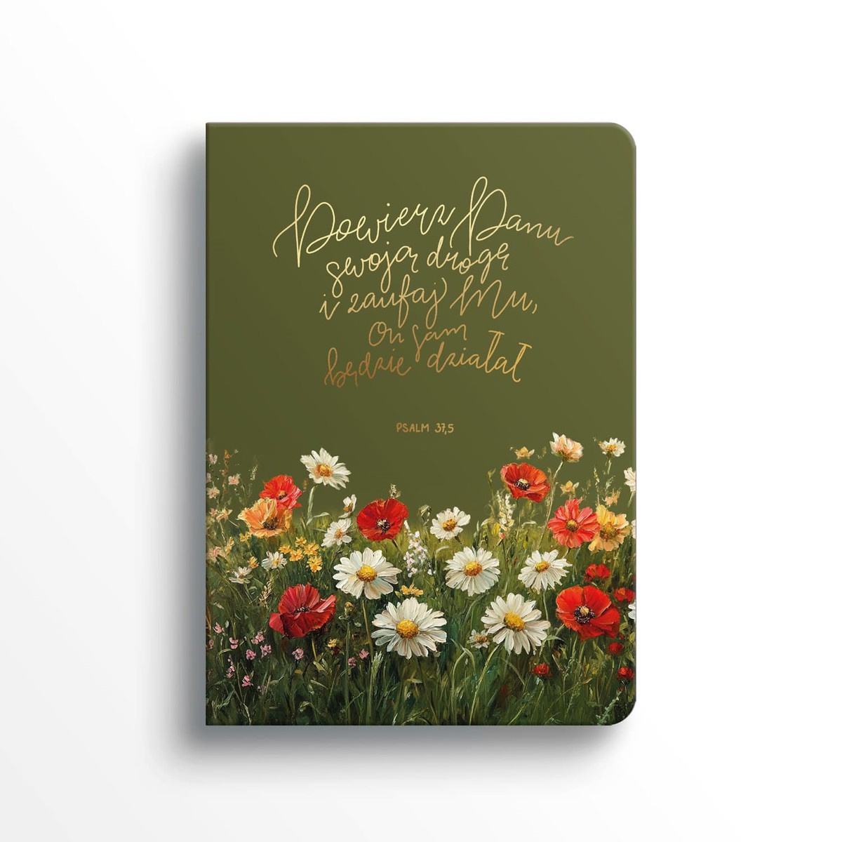 Notatnik „Powierz Panu swoją drogę” to wyjątkowy notes z ekoskóry inspirowany pięknem natury i treścią Psalmu 37,5. Kwiaty na okładce oraz złocone tłoczenie tworzą elegancki, kojący design, który codziennie przypomina o Bożym prowadzeniu.