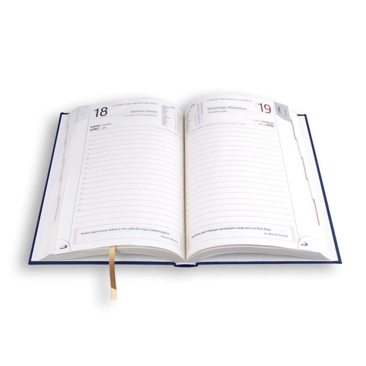 - przejrzysta organizacja – każdy dzień na oddzielnej stronie,