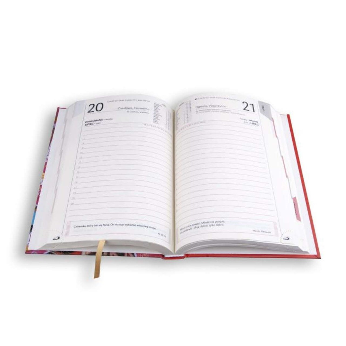 - przejrzysta organizacja – każdy dzień na oddzielnej stronie,