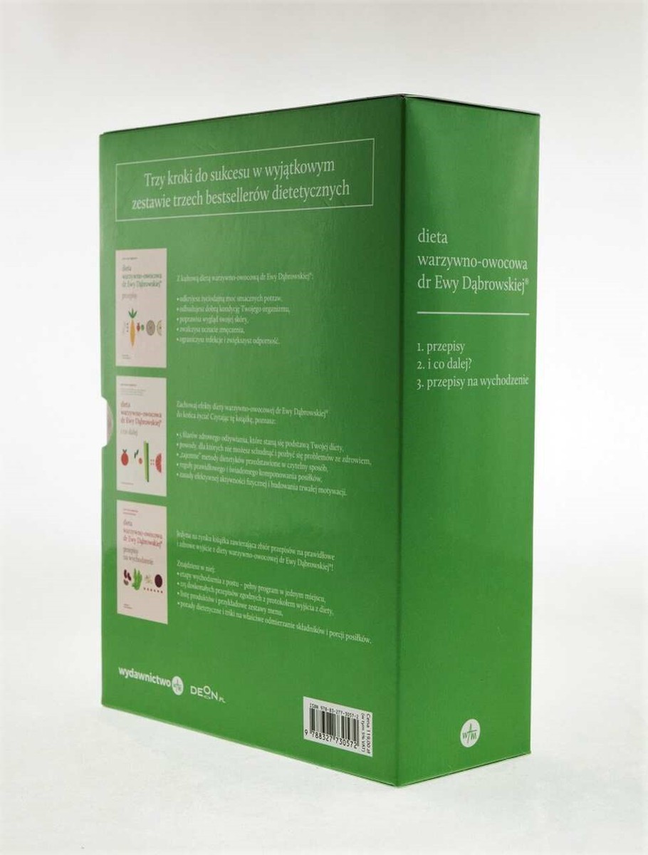 Zestaw trzech bestsellerowych publikacji to kompleksowy przewodnik po diecie warzywno-owocowej dr Ewy Dąbrowskiej, składający się z: